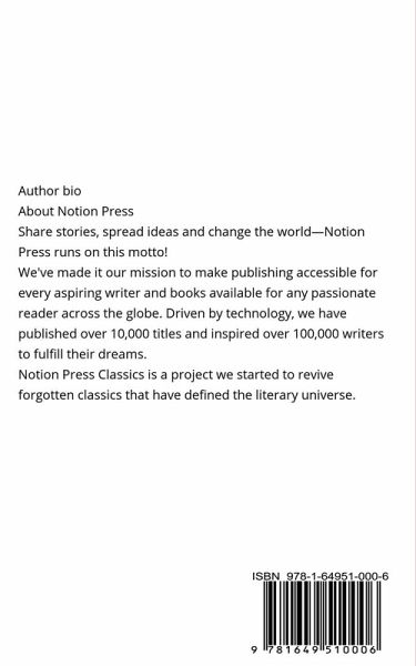Author bioAbout Notion PressShare stories, spread ideas and change the world-Notion Press runs on this motto!We've made it our mission to make publishing accessible for every aspiring writer and books available for any passionate reader across the globe. Driven by technology, we have published over 10,000 titles and inspired over 100,000 writers to fulfill their dreams.Notion Press Classics is a project we started to revive forgotten classics that have defined the literary universe.