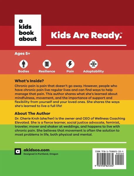 Chronic pain is pain that doesn't go away. However, people who have chronic pain live regular lives and can find ways to help manage that pain. This author shares what she's learned about mindfulness, movement, and the importance of support and flexibility from yourself and your loved ones. She shares the ways she's learned to live a full life! ¿¿Core themes in this book: Adaptability, Bodies, Pain, Resilience Meet A Kids Co., a new kind of media company with a collection of beautifully designed books that kickstart challenging, empowering, and important conversations for kids and their grownups.