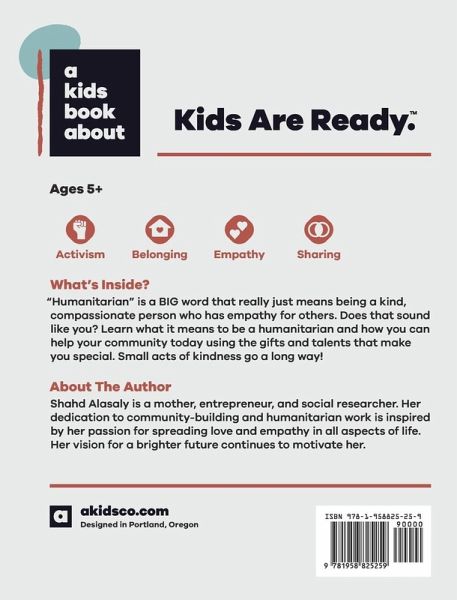 "Humanitarian" is a BIG word that really just means being a kind, compassionate person who has empathy for others. Does that sound like you? Learn what it means to be a humanitarian and how you can help your community today using the gifts and talents that make you special. Small acts of kindness go a long way! Core themes in this book: Activism, Belonging, Empathy, Sharing Meet A Kids Co., a new kind of media company with a collection of beautifully designed books that kickstart challenging, empowering, and important conversations for kids and their grownups. Learn more about us at akidsco.com.