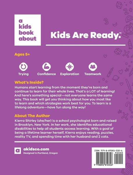 Humans start learning from the moment they're born and continue to learn for their whole lives. That's a LOT of learning! And here's something special-not everyone learns the same way. This book will get you thinking about how you most like to learn and which strategies work best for you. To learn is a lifelong adventure-have fun along the way! ¿¿ Core themes in this book: Trying, Confidence, Exploration, Teamwork Meet A Kids Co., a new kind of media company with a collection of beautifully designed books that kickstart challenging, empowering, and important conversations for kids and their grownups.