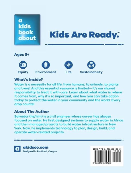 Water is a necessity for all life, from humans, to animals, to plants and trees! And this essential resource is limited-it's our shared responsibility to treat it with care. Learn about what water is, where it comes from, why it's so important, and how you can take action today to protect the water in your community and the world. Every drop counts! Core themes in this book: Equity, Environment, Life, Sustainability Meet A Kids Co., a new kind of media company with a collection of beautifully designed books that kickstart challenging, empowering, and important conversations for kids and their grownups. Learn more about us at akidsco.com.
