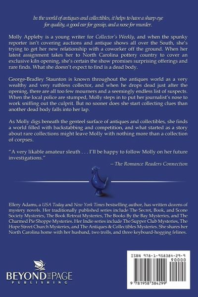 The first book in the terrific Antiques & Collectibles series by New York Times bestselling author Ellery Adams. In the world of antiques and collectibles, it helps to have a sharp eye for quality, a good ear for gossip, and a nose for murder . . . Molly Appleby is a young writer for Collector's Weekly, and when the spunky reporter isn't covering auctions and antique shows all over the South, she's trying to get her new relationship with a coworker off the ground. When her latest assignment takes her to North Carolina pottery country to cover an exclusive kiln opening, she's certain the show promises surprising offerings and rare finds. What she doesn't expect to find is a dead body. George-Bradley Staunton is known throughout the antiques world as a very wealthy and very ruthless collector, and when he drops dead just after the opening, there are all too few mourners and a seemingly endless list of suspects. When the local police are stumped, Molly steps in to put her journalist's nose to work sniffing out the culprit. But no sooner does she start collecting clues than another dead body falls into her lap. As Molly digs beneath the genteel surface of antiques and collectibles, she finds a world filled with backstabbing and competition, and what started as a story about rare collections might leave Molly with nothing more than a collection of corpses. "A very likable amateur sleuth . . . I'll be happy to follow Molly on her future investigations."-The Romance Readers Connection