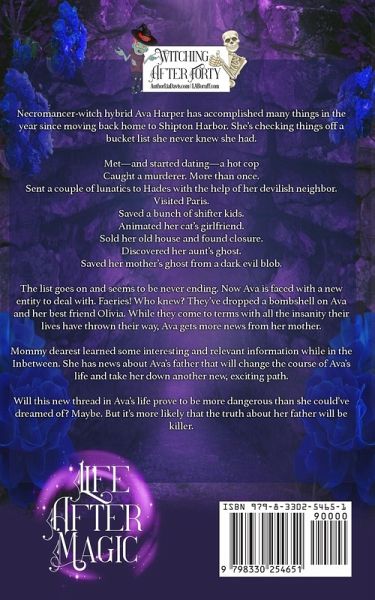 Necromancer-witch hybrid Ava Harper has accomplished many things in the year since moving back home to Shipton Harbor. She's checking things of a bucket list she never knew she had. Met-and started dating-a hot cop Caught a murderer. More than once. Sent a couple of lunatics to Hades with the help of her devilish neighbor. Visited Paris. Saved a bunch of shifter kids. Animated her cat's girlfriend. Sold her old house and found closure. Discovered her aunt's ghost. Saved her mother's ghost from a dark evil blob. The list goes on and seems to be never ending. Now Ava is faced with a new entity to deal with. Faeries! Who knew? They've dropped a bombshell on Ava and her best friend Olivia. While they come to terms with all the insanity their lives have thrown their way, Ava gets more news from her mother. Mommy dearest learned some interesting and relevant information while in the Inbetween. She has news about Ava's father that will change the course of Ava's life and take her down another new, exciting path. Will this new thread in Ava's life prove to be more dangerous than she could've dreamed of? Maybe. But it's more likely that the truth about her father will be killer. The Witching After Forty series is part of the Life After Magic World.