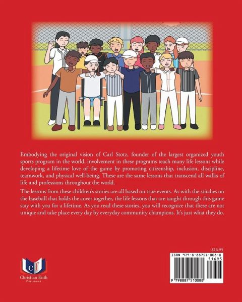 Embodying the original vision of Carl Stotz, founder of the largest organized youth sports program in the world, involvement in these programs teach many life lessons while developing a lifetime love of the game by promoting citizenship, inclusion, discipline, teamwork, and physical well-being. These are the same lessons that transcend all walks of life and professions throughout the world. The lessons from these children's stories are all based on true events. As with the stitches on the baseball that holds the cover together, the life lessons that are taught through this game stay with you for a lifetime. As you read these stories, you will recognize that these are not unique and take place every day by everyday community champions. It's just what they do.
