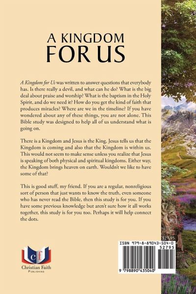 A Kingdom for Us was written to answer questions that everybody has. Is there really a devil, and what can he do? What is the big deal about praise and worship? What is the baptism in the Holy Spirit, and do we need it? How do you get the kind of faith that produces miracles? Where are we in the timeline? If you have wondered about any of these things, you are not alone. This Bible study was designed to help all of us understand what is going on. There is a Kingdom and Jesus is the King. Jesus tells us that the Kingdom is coming and also that the Kingdom is within us. This would not seem to make sense unless you realize that Jesus is speaking of both physical and spiritual kingdoms. Either way, the Kingdom brings heaven on earth. Wouldn't we like to have some of that? This is good stuff, my friend. If you are a regular, nonreligious sort of person that just wants to know the truth, even someone who has never read the Bible, then this study is for you. If you have some previous knowledge but aren't sure how it all works together, this study is for you too. Perhaps it will help connect the dots.