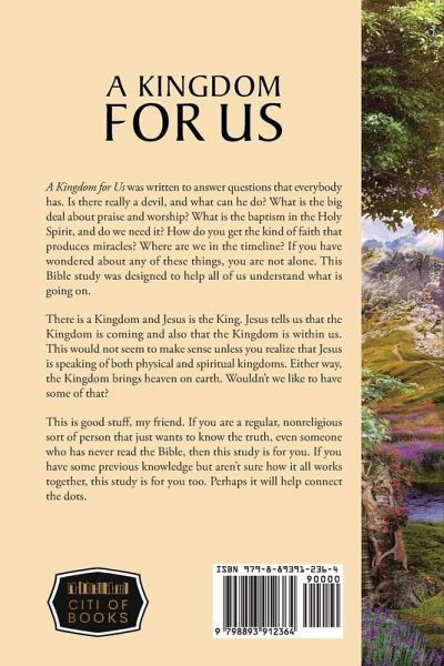 A Kingdom for Us was written to answer questions that everybody has. Is there really a devil, and what can he do? What is the big deal about praise and worship? What is the baptism in the Holy Spirit, and do we need it? How do you get the kind of faith that produces miracles? Where are we in the timeline? If you have wondered about any of these things, you are not alone. This Bible study was designed to help all of us understand what is going on. There is a Kingdom and Jesus is the King. Jesus tells us that the Kingdom is coming and also that the Kingdom is within us. This would not seem to make sense unless you realize that Jesus is speaking of both physical and spiritual kingdoms. Either way, the Kingdom brings heaven on earth. Wouldn't we like to have some of that?