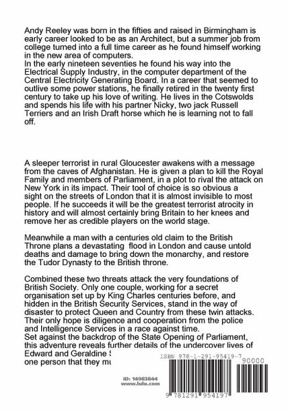 A sleeper terrorist in rural Gloucester awakens with a message from the caves of Afghanistan. He is given a plan to kill the Royal Family and members of Parliament. The tool of choice is so obvious a sight that it is almost invisible to most people. Meanwhile a man with a centuries old claim to the British Throne plans a devastating flood in London and cause untold deaths and damage to bring down the monarchy, and restore the Tudor Dynasty to the British throne. Combined these two threats attack the very foundations of British Society. Only one couple, working for a secret organisation set up by King Charles centuries before, and hidden in the British Security Services, stand in the way of disaster to protect Queen and Country from these twin attacks. Their only hope is diligence and cooperation from the police and Intelligence Services in a race against time.