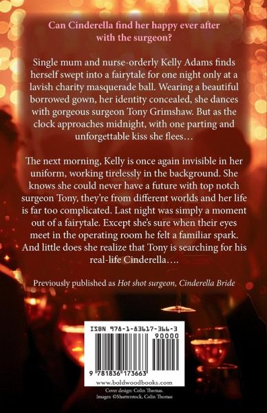 Can Cinderella find her happy ever after with the surgeon? Single mum and nurse-orderly Kelly Adams finds herself swept into a fairytale for one night only at a lavish charity masquerade ball. Wearing a beautiful borrowed gown, her identity concealed, she dances with gorgeous surgeon Tony Grimshaw. But as the clock approaches midnight, with one parting and unforgettable kiss she flees... The next morning, Kelly is once again invisible in her uniform, working tirelessly in the background. She knows she could never have a future with top notch surgeon Tony, they're from different worlds and her life is far too complicated. Last night was simply a moment out of a fairytale. Except she's sure when their eyes meet in the operating room he felt a familiar spark. And little does she realize that Tony is searching for his real-life Cinderella.... Previously published as Hot shot surgeon, Cinderella Bride