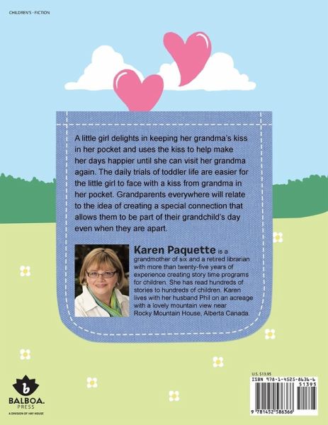 A little girl delights in keeping her grandma's kiss in her pocket and uses the kiss to help make her days happier until she can visit her grandma again. The daily trials of toddler life are easier for the little girl to face with a kiss from grandma in her pocket. Grandparents everywhere will relate to the idea of creating a special connection that allows them to be part of their grandchild's day even when they are apart.