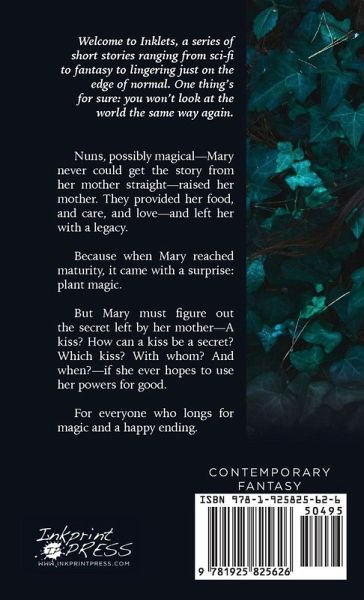 Nuns, possibly magical-Mary never could get the story from her mother straight-raised her mother. They provided her food, and care, and love-and left her with a legacy. Because when Mary reached maturity, it came with a surprise: plant magic. But Mary must figure out the secret left by her mother- A kiss? How can a kiss be a secret? Which kiss? With whom? And when?-if she ever hopes to use her powers for good. For everyone who longs for magic and a happy ending. Welcome to Inklets, collectible stand-alone short stories ranging from sci-fi to fantasy to lingering just on the edge of normal. One thing's for sure: you won't look at the world the same way again.