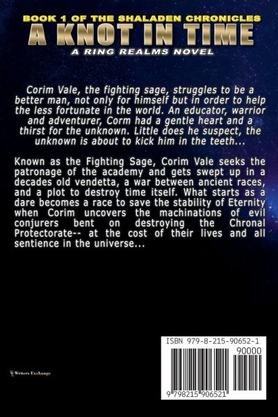 An educator, warrior and adventurer, Corim had a gentle heart and a thirst for the unknown. Little does he suspect, the unknown is about to find him and kick him in the teeth... Corim Vale has spent his life dreaming of visiting other worlds, of learning and bringing education to the masses. One thing stands between him and his lofty goals: The seventh circle challenge against Talorin Falor, the academy headmaster and arguably the strongest man on all of Titaan. Known as the "Fighting Sage", Corim is an explorer and knowledge seeker who uses tournament winnings to fund his research. Ready to push toward loftier ambitions, the warrior-academic seeks the patronage of the powerful academy and gets swept up in a decades old vendetta, a war between ancient races, and a plot to destroy time itself. What starts as a dare becomes a race to save the stability of Eternity when Corim's investigation uncovers the machinations of a team of evil conjurers bent on the destruction of the Chronal Protectorate--even at the cost of their lives and all sentience in the universe...