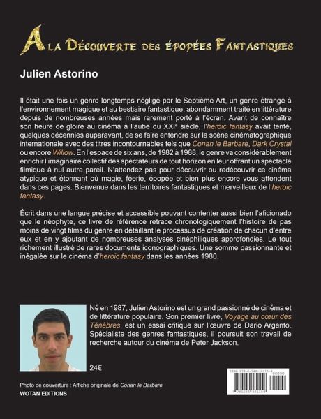 Il était une fois un genre longtemps négligé par le Septième Art, un genre étrange à l'environnement magique et au bestiaire fantastique, abondamment traité en littérature depuis de nombreuses années mais rarement porté à l'écran. Avant de connaître son heure de gloire au cinéma à l'aube du XXIe siècle, l'heroic fantasy avait tenté, quelques décennies auparavant, de se faire entendre sur la scène cinématographique internationale avec des titres incontournables tels que Conan le Barbare, Dark Crystal ou encore Willow. En l'espace de six ans, de 1982 à 1988, le genre va considérablement enrichir l'imaginaire collectif des spectateurs de tout horizon en leur offrant un spectacle filmique à nul autre pareil. N'attendez pas pour découvrir ou redécouvrir ce cinéma atypique et étonnant où magie, féérie, épopée et bien plus encore vous attendent dans ces pages. Bienvenue dans les territoires fantastiques et merveilleux de l'heroic fantasy.