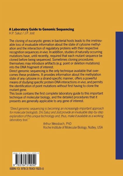 A Safety Considerations Genomic sequencing involves a number of hazardous steps, such as high current, high voltage, radioactive and highly toxic chemicals. It is, therefore, absolutelyessen tial that the instructions of equipment manufacturers be followed and that particular attention is paid to the local and federal safety regulations. INTRODUCTION 9 B Introduction During the cloning of genomic DNA many of its characteristics are perma nently lost. It was therefore necessary to develop a new technique that would give us a closer look at a gene in its normal environment. The powerful technique of genomic sequencing, first described by Church and Gilbert (1984) now makes it possible to have a precise view of a given DNA sequence in a chromosome. This method combines the chemical DNA-sequencing procedure of Maxam and Gilbert (1980) with the detection of DNA sequences by electroblotting and indirect end-labeling by hybridization. Besides studies on the methylation state of single bases in a given gene (Nick et al. , 1986; Saluz and Jost, 1986; Saluz et al. , 1986), genomic sequencing can also be used to study specific DNA-protein interactions in vivo (Church et al. , 1985; Giniger et al. , 1985; Becker et al. , 1986; Ephrussi et al. , 1985; Martin et al. , 1986; Nick et al. , 1986; Zinn and Maniatis, 1986).