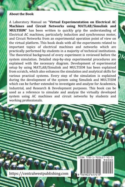 A Laboratory Manual on "Virtual Experimentation on Electrical AC Machines and Circuit Networks using MATLAB/Simulink and MULTISIM" has been written to quickly grip the understanding of Electrical AC machines, particularly induction and synchronous motor, and Circuit Networks from an experimental operation point of view on the virtual platform. This book deals with all the experiments related to important topics of electrical machines and networks which are on practically performed by students in a majority of technical institutions. The theoretical background of every experiment is reviewed before the system simulation. Detailed step-by-step experimental procedures are explained with the necessary diagram. Development of experimental setup by using MATLAB/Simulink and MULTISIM has been explained from scratch, which also enhances the simulation and analytical skills for various practical systems. Every step of the simulation is explained during the development of the system using Simulink and MULTISIM which can be further extended to investigate and analyze for Academics, Industrial, and Research & Development purposes. This book can be used as a reference to simulate and analyze the virtually developed system using AC machines and circuit networks by students and working professionals.