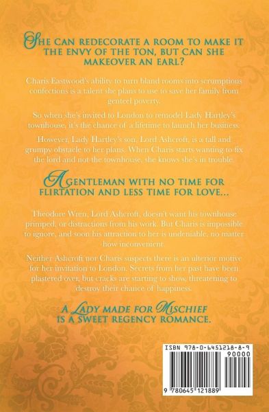 She can redecorate a room to make it the envy of the ton, but can she makeover an earl? Charis Raleigh's ability to turn bland rooms into scrumptious confections is a talent she plans to use to save her family from genteel poverty. So when she's invited to London to remodel Lady Hartley's townhouse, it's the chance of a lifetime to launch her business. However, Lady Hartley's son, Lord Ashcroft, is a tall and grumpy obstacle to her plans. When Charis starts wanting to fix the lord and not the townhouse, she knows she's in trouble. A gentleman with no time for flirtation and less time for love... Theodore Wren, Lord Ashcroft, doesn't want his townhouse primped, or distractions from his work. But Charis is impossible to ignore, and soon his attraction to her is undeniable, no matter how inconvenient. Neither Ashcroft nor Charis suspects there is an ulterior motive for her invitation to London. Secrets from her past have been plastered over, but cracks are starting to show, threatening to destroy their chance of happiness.