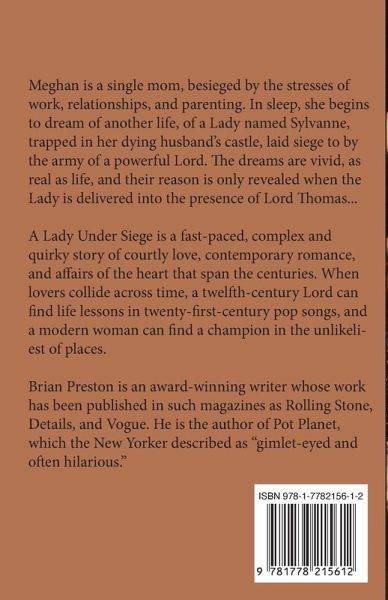 Meghan is a single mom, besieged by the stresses of work, relationships, and parenting. In sleep, she begins to dream of another life, of a Lady named Sylvanne, trapped in her dying husband's castle, under siege by the army of a powerful Lord. The dreams are vivid, as real as life, and their reason is only revealed when the Lady is delivered into the presence of Lord Thomas... Spanning the centuries, A Lady Under Siege is a fast-paced, complex and quirky story of courtly love, contemporary romance, and affairs of the heart. When lovers collide across time, a twelfth-century Lord can find life lessons in twenty-first-century pop songs, and a modern-day woman can find a champion in the unlikeliest of places. Brian Preston is an award-winning writer whose work has been published in such magazines as Rolling Stone, Details, and Vogue. He is the author of Pot Planet, which the New Yorker described as "gimlet-eyed and often hilarious.