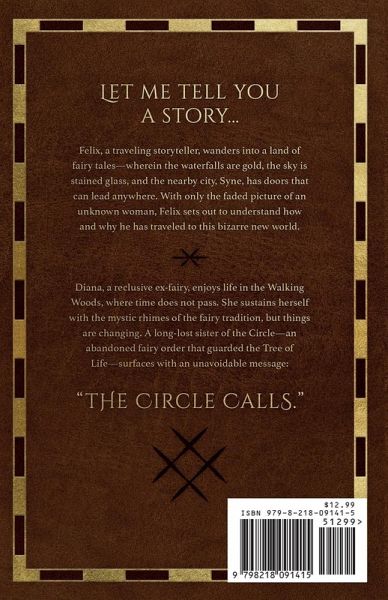 Let me tell you a story... Felix, a traveling storyteller, wanders into a land of fairy tales-wherein the waterfalls are gold, the sky is stained glass, and the nearby city, Syne, has doors that can lead anywhere. With only the faded picture of an unknown woman, Felix sets out to understand how and why he has traveled to this bizarre, new world. Diana, a reclusive ex-fairy, enjoys life in the Walking Woods, where time does not pass. She sustains herself with the mystic rhimes of the fairy tradition, but things are changing. A long-lost sister of the Circle-an abandoned fairy order that guarded the Tree of Life-surfaces with an unavoidable message: "The Circle Calls."