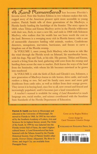 A Land Remembered has become Florida's favorite novel. Now this Student Edition in two volumes makes this rich, rugged story of the American pioneer spirit more accessible to young readers. Patrick Smith tells of three generations of the MacIveys, a Florida family battling the hardships of the frontier. The story opens in 1858, when Tobias and Emma MacIvey arrive in the Florida wilderness with their son, Zech, to start a new life, and ends in 1968 with Solomon MacIvey, who realizes that his wealth has not been worth the cost to the land. Between is a sweeping story rich in Florida history with a cast of memorable characters who battle wild animals, rustlers, Confederate deserters, mosquitoes, starvation, hurricanes, and freezes to carve a kingdom out of the Florida swamp. In this volume, meet young Zech MacIvey, who learns to ride like the wind through the Florida scrub on Ishmael, his marshtackie horse, his dogs, Nip and Tuck, at this side. His parents, Tobias and Emma, scratch a living from the land, gathering wild cows from the swamp and herding them across the state to market. Zech learns the ways of the land from the Seminoles, with whom his life becomes entwined as he grows into manhood. Next in series > > See all of the books in this series