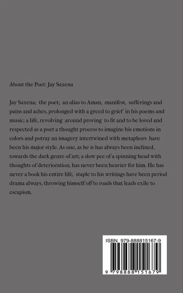 For me; this book is a collection of four scenarios; a shortfall, being a mid-point for turn around to all the repercussion after being at halt in exile of mist and haze for distances confirmed till eternity. For the poet himself is discombobulated, and miserable of outcomes yet to be fire, to the distances and a horrendous rendition to loathing himself. This book also covers some great depths of hate and envy, and suspicion that readers would still be unaware of.