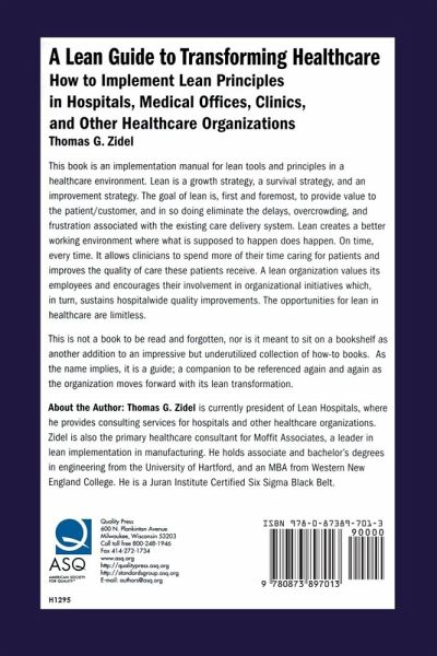 This book is an implementation manual for lean tools and principles in a healthcare environment. Lean is a growth strategy, a survival strategy, and an improvement strategy. The goal of lean is, first and foremost, to provide value to the patient/customer, and in so doing eliminate the delays, overcrowding, and frustration associated with the existing care delivery system. Lean creates a better working environment where what is supposed to happen does happen. On time, every time. It allows clinicians to spend more of their time caring for patients and improves the quality of care these patients receive. A lean organization values its employees and encourages their involvement in organizational initiatives which, in turn, sustains hospital-wide quality improvements. The opportunities for lean in healthcare are limitless. This is not a book to be read and forgotten, nor is it meant to sit on a book shelf as another addition to an impressive but underutilized collection of how-to books. As the name implies, it is a guide; a companion to be referenced again and again as the organization moves forward with its lean transformation. "This is a well-researched, well-written work by an individual who understands the current healthcare environment. It provides a practical and sound understanding of the concepts and application for Lean and Six Sigma." James R. Bente Vice President, Quality & Organizational Development Memorial Health System "Healthcare quality professionals in the U.S. and abroad could benefit from the content of this book...Comprehensive discussion of lean and its relevance to healthcare, excellent description of techniques and tools, and excellent examples and figures." Luc R. Pelletier, MSN APRN BC FNAHQ FAAN Editor in Chief Journal for Healthcare Quality COMMENTS FROM OTHER CUSTOMERS Average Customer Rating (4.5 of 5 based on 4 reviews) "This book is easy to read and demystifies the complex world of Lean by clearly explaining what Lean is, what it does, and the tools used; all in the context of healthcare. Because examples illustrate the benefit of Lean not just to the healthcare industry, but to us as patients, the business case is especially compelling. Instructions address technical challenges and draw from best practices in change management. The guide provides a road map for implementation and seasoned insights that leave one trusting that Lean is very doable, and a necessity." A reader in Seattle, Washington "I thoroughly enjoyed this book as it provides concrete and detailed examples of Lean principles applied to a healthcare environment. I myself am new to healthcare and am overwhelmed at the wealth of opportunities for improvement. I plan on using some lean principles to demonstrate that improvements don't have to be complex or costly to achieve results" A reader in Montreal, Quebec "This is an excellent resource. I consider it 'required reading' for all that are new to Lean / Process Improvement. In my role, I facilitate 5-10 concurrent process improvement projects. This book has been invaluable as a teaching tool. I've asked each project leader to buy, read and study this book. All have commented that it has an easy read, helped them to understand the Lean concepts, and quickly implement the tools. As a group, we're better able to speak the same language and have a common understanding of the tools.brI highly recommended this book. I would also recommend the website (www.leanhospitals.org), wh..." A reader in Wausau, Wisconsin