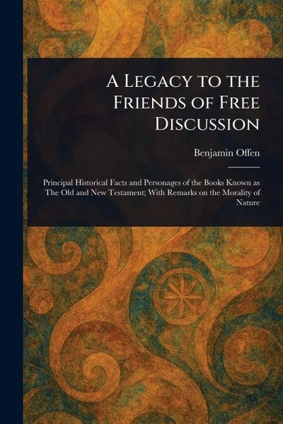 "A Legacy to the Friends of Free Discussion" by Benjamin Offen offers a detailed examination of the Old and New Testaments, exploring key historical facts and figures. This meticulously prepared edition delves into the realm of biblical criticism, religious history, and moral philosophy, providing readers with a comprehensive exploration of scripture. Offen's work serves as a valuable resource for those interested in understanding the historical and philosophical contexts surrounding the Bible. It invites readers to consider the morality of nature alongside traditional religious interpretations. This insightful exploration provides a foundation for thoughtful discussion and a deeper understanding of the historical and cultural forces that have shaped religious thought. A significant contribution to the study of religion and its intersection with science, this book is a timeless resource for students and scholars alike. This work has been selected by scholars as being culturally important, and is part of the knowledge base of civilization as we know it. This work is in the public domain in the United States of America, and possibly other nations. Within the United States, you may freely copy and distribute this work, as no entity (individual or corporate) has a copyright on the body of the work. Scholars believe, and we concur, that this work is important enough to be preserved, reproduced, and made generally available to the public. We appreciate your support of the preservation process, and thank you for being an important part of keeping this knowledge alive and relevant.