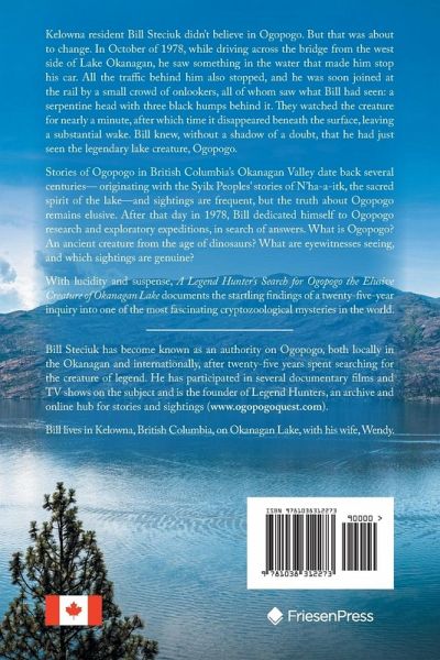 Kelowna resident Bill Steciuk didn't believe in Ogopogo. But that was about to change. In October of 1978, while driving across the bridge from the west side of Lake Okanagan, he saw something in the water that made him stop his car. All the traffic behind him also stopped, and he was soon joined at the rail by a small crowd of onlookers, all of whom saw what Bill had seen: a serpentine head with three black humps behind it. They watched the creature for nearly a minute, after which time it disappeared beneath the surface, leaving a substantial wake. Bill knew, without a shadow of a doubt, that he had just seen the legendary lake creature, Ogopogo. Stories of Ogopogo in British Columbia's Okanagan Valley date back several centuries- originating with the Syilx Peoples' stories of N'ha-a-itk, the sacred spirit of the lake-and sightings are frequent, but the truth about Ogopogo remains elusive. After that day in 1978, Bill dedicated himself to Ogopogo research and exploratory expeditions, in search of answers. What is Ogopogo? An ancient creature from the age of dinosaurs? What are eyewitnesses seeing, and which sightings are genuine? With lucidity and suspense, A Legend Hunter's Search for Ogopogo the Elusive Creature of Okanagan Lake documents the startling findings of a twenty-five-year inquiry into one of the most fascinating cryptozoological mysteries in the world.