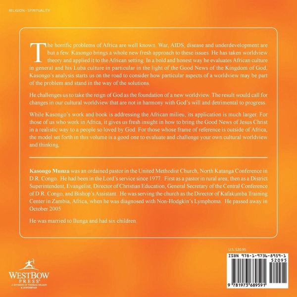 The horrific problems of Africa are well known. War, AIDS, disease and underdevelopment are but a few. Kasongo brings a whole new fresh approach to these issues. He has taken worldview theory and applied it to the African setting. In a bold and honest way he evaluates African culture in general and his Luba culture in particular in the light of the Good News of the Kingdom of God, Kasongo's analysis starts us on the road to consider how particular aspects of a worldview may be part of the problem and stand in the way of the solutions. He challenges us to take the reign of God as the foundation of a new worldview. The result would call for changes in our cultural worldview that are not in harmony with God's will and detrimental to progress. While Kasongo's work and book is addressing the African milieu, its application is much larger. For those of us who work in Africa, it gives us fresh insight in how to bring the Good News of Jesus Christ in a realistic way to a people so loved by God. For those whose frame of reference is outside of Africa, the model set forth in this volume is a good one to evaluate and challenge your own cultural worldview and thinking.