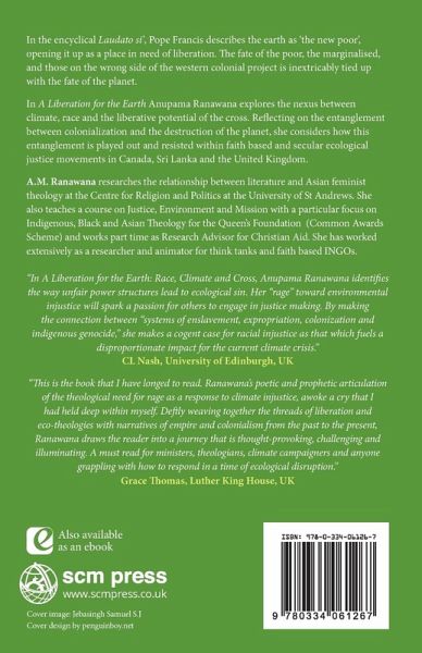 In the encyclical Laodato Si, Pope Francis describes the earth as 'the new poor', opening it up as a place in need of liberation. The fate of the poor, the marginalised, and those on the wrong side of the western colonial project is inextricably tied up with the fate of the planet. In A Liberation for the Earth Anupama Ranawana explores the nexus between climate, race and the liberative potential of the cross. Reflecting on the entanglement between colonialization and the destruction of the planet, she considers how this entanglement is played out and resisted within faith based and secular ecological justice movements in Canada, Sri Lanka and the United Kingdom.