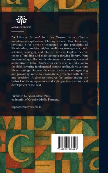 "A Library Primer" by John Cotton Dana offers a foundational exploration of library science. This classic text, invaluable for anyone interested in the principles of librarianship, provides insights into library management, book selection, cataloging, and reference services. Explore the core tenets of building and maintaining a thriving library, from understanding collection development to mastering essential administrative tasks. Dana's work serves as an introduction to the field, covering fundamental aspects applicable to various library settings. Discover the essential elements of organizing and providing access to information, presented with clarity and precision. A timeless resource for understanding the bedrock of library operations and a glimpse into the historical development of the field. This work has been selected by scholars as being culturally important, and is part of the knowledge base of civilization as we know it. This work is in the public domain in the United States of America, and possibly other nations. Within the United States, you may freely copy and distribute this work, as no entity (individual or corporate) has a copyright on the body of the work. Scholars believe, and we concur, that this work is important enough to be preserved, reproduced, and made generally available to the public. We appreciate your support of the preservation process, and thank you for being an important part of keeping this knowledge alive and relevant.