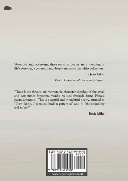 In A Lick of Loose Threads Jenna Plewes gives us a window into the lives of people who are making the best of things in difficult times. Poems celebrate the kindness of strangers, resilience and courage found in unlikely places; fragments of ordinary lives that are extraordinary and special. These are warm and lyrical poems shot through with the beauty of the natural world. 'Attentive and observant, these sensitive poems are a mending of life's everyday, a generous and deeply empathic pamphlet collection.' - Jean Atkin Poet in Education & Community Projects 'These loose threads are memorable character sketches of the small and sometimes forgotten, vividly realised through Jenna Plewes' poetic attention. This is a wistful and thoughtful poetry, attuned to "Torn fabric, / mended [and] re-patterned" and to "the stumbling will to live"'- Rosie Miles