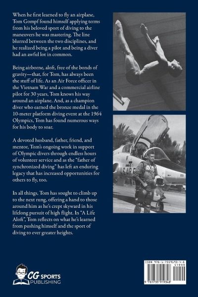 Back when he was first learning to fly an airplane, Tom Gompf found himself applying terms from his beloved sport of diving to the maneuvers he was mastering. The line began blurring between the two disciplines, and he realized being a pilot and being a diver had an awful lot in common. Both were forms of flying. Being airborne, aloft, free of the bonds of gravity-that, for Tom, has always been the stuff of life. As an Air Force officer serving in the Vietnam War and a commercial airline pilot for 30 years, Tom knows his way around an airplane. And, as a champion diver who earned the bronze medal in the 10-meter platform diving event at the 1964 Olympics, Tom has found numerous ways to soar physically. A devoted husband, father, friend, and mentor, Tom's ongoing work in support of Olympic divers through endless hours of volunteer service and as the "father of synchronized diving" has certainly left an enduring legacy that's increased opportunities for others to fly, too. In all things, Tom has sought to climb up to the next rung, offering a hand up to those around him as he's crept skyward in his lifelong pursuit of high flight. In "A Life Aloft," Tom reflects back on what he's learned from pushing himself and the sport of diving to ever greater heights.
