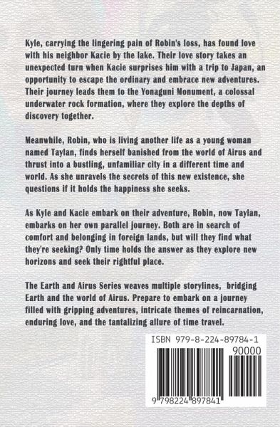 Kyle, carrying the lingering pain of Robin's loss, has found love with his neighbor Kacie by the lake. Their love story takes an unexpected turn when Kacie surprises him with a trip to Japan, an opportunity to escape the ordinary and embrace new adventures. Their journey leads them to the Yonaguni Monument, a colossal underwater rock formation, where they explore the depths of discovery together. Meanwhile, Robin, who is living another life as a young woman named Taylan, finds herself banished from the world of Airus and thrust into a bustling, unfamiliar city in a different time and world. As she unravels the secrets of this new existence, she questions if it holds the happiness she seeks. As Kyle and Kacie embark on their adventure, Robin, now Taylan, embarks on her own parallel journey. Both are in search of comfort and belonging in foreign lands, but will they find what they're seeking? Only time holds the answer as they explore new horizons and seek their rightful place. The Earth and Airus Series weaves multiple storylines, bridging Earth and the world of Airus. Prepare to embark on a journey filled with gripping adventures, intricate themes of reincarnation, enduring love, and the tantalizing allure of time travel. Uncover the hidden truths of a forgotten existence and unlock the enigmatic mysteries that entwine two worlds.