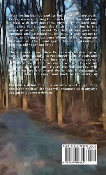 After losing her job and its built-in social network, Francesca is spending too much time alone and consumed with her thoughts. Physically isolated and desperate for change, she finds inspiration in the pages of an old journal. Writing always gave her purpose and satisfaction, but now it only seems to raise terrifying questions: When did her dream get lost and can it be found again? Is she good enough? Is it too old? Is it too late? The answers come when Francesca's husband proposes a trip to Italy, to reconnect with friends and each other. At the same time, a publishing house expresses interest in Francesca's writing. Poised on the edge of literal and figurative rediscovery, will Francesca move forward down this life-changing path, or take the easy road back to the safety of dreams? Fornelli's debut novel is an introspective journey down the path of life that will resonate with anyone daring to pursue a dream.
