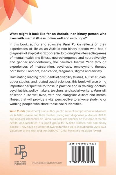 What might it look like for an Autistic, non-binary person who lives with mental illness to live well and with hope? In this book, author and advocate Yenn Purkis reflects on their experiences of life as an Autistic non-binary person who has a diagnosis of atypical schizophrenia. Exploring the intersecting areas of mental health and illness, neurodivergence and neurodiversity, and gender non-conformity, the narrative follows Yenn through experiences of incarceration, psychosis, employment, therapy both helpful and not, medication, diagnosis, stigma and anxiety. Illuminating reading for students of disability studies, Autism studies, queer studies, and related social sciences, this book will also bring important perspective to those in practice and in training: doctors, psychiatrists, policy makers, teachers, and social workers. Yenn will describe a life well-lived, with and alongside Autism and mental illness, that will provide a vital perspective to anyone studying or working people who share these social identities.