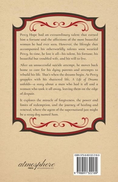 Percy Hope had an extraordinary talent that earned him a fortune and the affections of the most beautiful woman he had ever seen. However, the lifestyle that accompanied his otherworldly talents soon wearied Percy. In time, he lost it all-his talent, his fortune, his beautiful but troubled wife, and his will to live. After an unsuccessful suicide attempt, he moves back home to care for his dying parents and attempts to rebuild his life. That's when the dreams begin. As Percy grapples with his shattered life, A Life of Dreams unfolds-a story about a man who had it all and a woman who took it all away, leaving them on the edge of despair. It explores the miracle of forgiveness, the power and limits of redemption, and the journey of healing and renewal, where the agent of the supernatural just might be a stray dog named Sam.