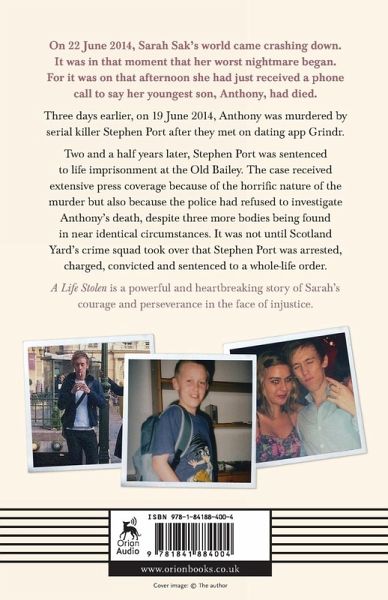 Sarah Sak, alongside her full-time work as a Facilities Manager, continues to campaign for better policing, to recognise and link crimes, support families, counter homophobia and raise greater public awareness of the dangers of dating sites/apps. Her main aim is to prevent other mothers losing their children and having to go through all the additional anguish she and the other three families have so cruelly experienced.