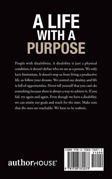 People with disabilities, A disability is just a physical condition; it doesn't define who we are as a person. We only have limitations. It doesn't stop us from living a productive life, so follow your dreams. We control our destiny, and life is full of opportunities. Never tell yourself that you can't do something because there is always a way to achieve it. If you fail, try again and again. Even though we have a disability, we can attain our goals and reach for the stars. Make sure that the stars are reachable. We have to be realistic.