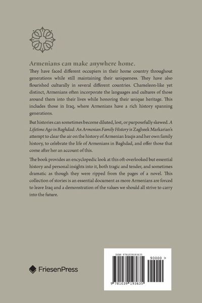 Armenians can make anywhere home. They have faced different occupiers in their home country throughout generations while still maintaining their uniqueness. They have also flourished culturally in several different countries. Chameleon-like yet distinct, Armenians often incorporate the languages and cultures of those around them into their lives while honoring their unique heritage. This includes those in Iraq, where Armenians have a rich history spanning generations. But histories can sometimes become diluted, lost, or purposefully skewed. A Lifetime Ago in Baghdad: An Armenian Family History is Zagheek Markarian's attempt to clear the air on the history of Armenian Iraqis and her own family history, to celebrate the life of Armenians in Baghdad, and offer those that come after her an account of this. The book provides an encyclopedic look at this oft-overlooked but essential history and personal insights into it, both tragic and tender, and sometimes dramatic as though they were ripped from the pages of a novel. This collection of stories is an essential document as more Armenians are forced to leave Iraq and a demonstration of the values we should all strive to carry into the future.