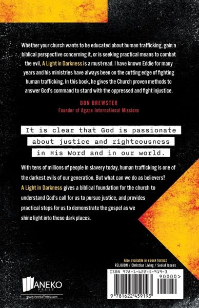 It is clear that God is passionate about justice and righteousness in His Word and in our world. With tens of millions of people in slavery today, human trafficking is one of the darkest evils of our generation. But what can we do as believers? A Light in Darkness gives a biblical foundation for the church to understand God's call for us to pursue justice, and provides practical steps for us to demonstrate the gospel as we shine light into these dark places. Endorsements Worldwide human trafficking is a modern form of slavery that negates justice and neighbor-love in the worst possible way. God, give us ears to hear Eddie Byun's word for our times. J.I. Packer A profoundly important message for the church today. Kyle Strobel Dr. Eddie Byun was instrumental in helping ignite a flame for justice in our school and guiding our student ministries. He lives and breathes by the power of the Holy Spirit to bring awareness and action plans to battle this worldwide evil. Dr. Terry Franson Eddie Byun opens our eyes to the realities of human trafficking around the world. Uche Anizor Eddie's book is instructive, insightful, and impactful. Mark del Mundo In this book, Eddie gives the Church proven methods to answer God's command to stand with the oppressed and fight injustice. Don Brewster Eddie calls the Church to pursue justice - not because it's trendy - but because God loves justice and hates injustice. This book walks us through the path of seeking justice. Eugene Cho