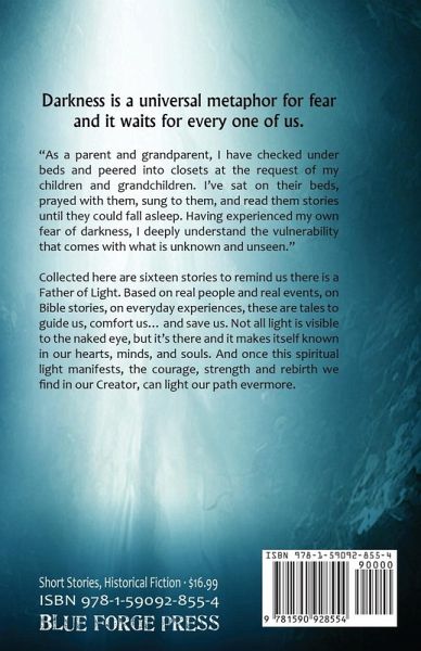 Darkness is a universal metaphor for fear and it waits for every one of us. "As a parent and grandparent, I have checked under beds and peered into closets at the request of my children and grandchildren. I've sat on their beds, prayed with them, sung to them, and read them stories until they could fall asleep. Having experienced my own fear of darkness, I deeply understand the vulnerability that comes with what is unknown and unseen." Collected here are sixteen stories to remind us there is a Father of Light. Based on real people and real events, on Bible stories, on everyday experiences, these are tales to guide us, comfort us... and save us. Not all light is visible to the naked eye, but it's there and it makes itself known in our hearts, minds, and souls. And once this spiritual light manifests, the courage, strength and rebirth we find in our Creator, can light our path evermore.