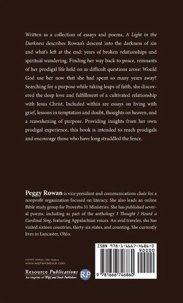 Written as a collection of essays and poems, A Light in the Darkness describes Rowan's descent into the darkness of sin and what's left at the end: years of broken relationships and spiritual wandering. Finding her way back to peace, remnants of her prodigal life held on as difficult questions arose: Would God use her now that she had spent so many years away? Searching for a purpose while taking leaps of faith, she discovered the deep love and fulfillment of a cultivated relationship with Jesus Christ. Included within are essays on living with grief, lessons in temptation and doubt, thoughts on heaven, and a reawakening of purpose. Providing insights from her own prodigal experience, this book is intended to reach prodigals and encourage those who have long straddled the fence.