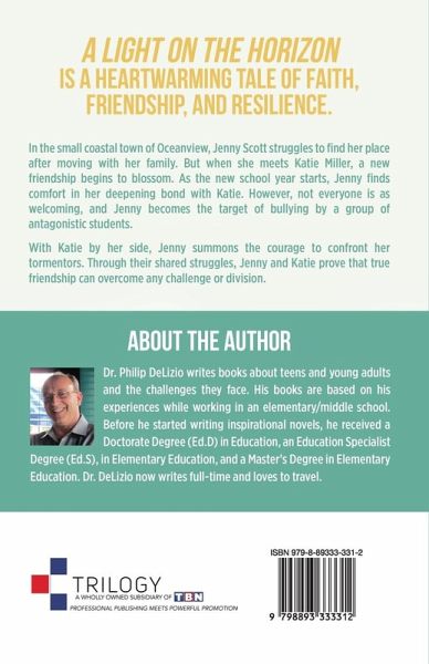 A LIGHT ON THE HORIZON IS A HEARTWARMING TALE OF FAITH, FRIENDSHIP, AND RESILIENCE. In the small coastal town of Oceanview, Jenny Scott struggles to find her place after moving with her family. But when she meets Katie Miller, a new friendship begins to blossom. As the new school year starts, Jenny finds comfort in her deepening bond with Katie. However, not everyone is as welcoming, and Jenny becomes the target of bullying by a group of antagonistic students. With Katie by her side, Jenny summons the courage to confront her tormentors. Through their shared struggles, Jenny and Katie prove that true friendship can overcome any challenge of division.