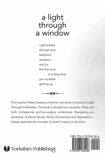 A Light Through A Window "months of silence louder than the fight-" From poet, doodler and speaker Haley Dewey comes a collection of poetry that explores the dissonance between absence, darkness and light. "A Light Through A Window," pulls the blinds back from the most disfigured and debaucherous versions of ourselves, inviting the reader to abandon the dark and find healing in the beauty of Light.