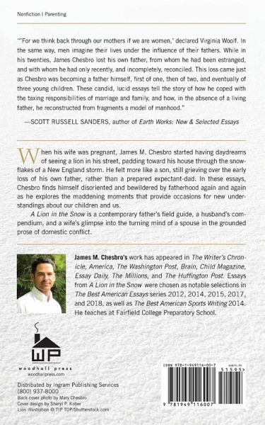 When his wife was pregnant, James M. Chesbro started having daydreams of seeing a lion in his street, padding toward his house through the snowflakes of a New England storm. He felt more like a son, still grieving over the early loss of his own father, rather than a prepared expectant-dad. In these essays, Chesbro finds himself disoriented and bewildered by fatherhood again and again as he explores the maddening moments that provide occasions for new understandings about our children and us. A Lion in the Snow is a contemporary father's field guide, a husband's compendium, and a wife's glimpse into the turning mind of a spouse in the grounded prose of domestic conflict. "James Chesbro writes with equal measure of heart and smarts, patiently braiding together threads of family, loss, memory, and fatherhood until we, the reader, become unraveled. His richly textured, sensory-driven prose reveals the hidden meaning and emotional stakes that shimmer beneath everyday activities as simple as mowing the lawn." -Steven Church, author of six books of nonfiction, most recently the collection of essays, I'm Just Getting to the Disturbing Part: on Work, Fear and Fatherhood, and One with the Tiger: Sublime and Violent Encounters Between Humans and Animals. "James Chesbro makes the mundane memorable. His clear and resonant voice makes every word feel as if it was written just for you. Smart, witty, and relatable, I'm always waiting for that next word, anxious to read on the page what I've so often felt in my heart." -B.J. Hollars, author of Flock Together, From the Mouths of Dogs, This Is Only a Test, and Sightings "A Lion in the Snow is a moving, meditative exploration of fatherhood, grief, and masculinity. James Chesbro paints a poignant picture of a young father still finding his way, while grappling with the loss of his own father. In these sharp, lyrical essays, Chesbro illustrates the eternal struggle: how do we follow in the footsteps of our parents without repeating all their mistakes?" --Tom McAllister, author of How to Be Safe "For we think back through our mothers if we are women," declared Virginia Woolf. In the same way, men imagine their lives under the influence of their fathers. While in his twenties, James Chesbro lost his own father, from whom he had been estranged, and with whom he had only recently, and incompletely, reconciled. This loss came just as Chesbro was becoming a father himself, first of one, then of two, and eventually of three young children. These candid, lucid essays tell the story of how he coped with the taxing responsibilities of marriage and family, and how, in the absence of a living father, he reconstructed from fragments a model of manhood." Scott Russell Sanders -- author of Earth Works: New & Selected Essays "Whether writing about missing his father during the solitude of an early morning, or musing about an elderly, lonely neighbor, Chesbro's essays are moving, thoughtful, and beautiful. I love reading his work." Jerald Walker -- author of The World in Flames and Street Shadows "A lawn mower, a train ride, a rubber ball, a wooden bridge over flapping fish-in A Lion in the Snow, James M. Chesbro has gathered together the small objects and moments that unite fathers and sons to produce a brilliant book." Sam Borden --senior writer for ESPN and former foreign correspondent for The New York Times