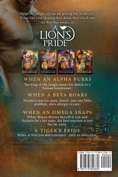 Forget the jungle, things are getting hot in the city. If you like your shapeshifters feline then check out the first four books, in A Lion's Pride. Includes: When An Alpha Purrs - The king of the jungle meets his match in a human hairdresser. When A Beta Roars - Hayder’s met his mate, there’s just one little problem, she’s allergic to cats. When An Omega Snaps - When Meena declares Leo is her mate, his first impulse is to run far, far away. A Tiger's Bride - When at first you don't succeed - turn to abduction.
