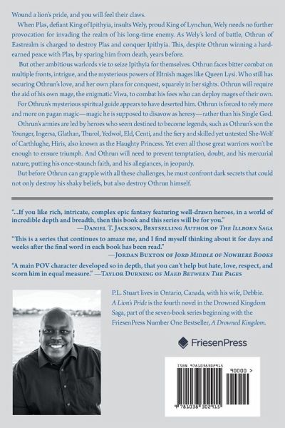 Wound a lion's pride, and you will feel their claws. When Plas, defiant King of Ipithyia, insults Wely, proud King of Lynchun, Wely needs no further provocation for invading the realm of his long time enemy. As Wely's lord of battle, Othrun of Eastrealm is charged to destroy Plas and conquer Ipithyia. This, despite Othrun winning a hard-earned peace with Plas, by sparing him from death, years before. But other ambitious warlords vie to seize Ipithyia for themselves. Othrun faces bitter combat on multiple fronts, intrigue, and the mysterious powers of Eltnish mages like Queen Lysi. Who still has securing Othrun's love, and her own plans for conquest, squarely in her sights. Othrun will require the aid of his own mage, the enigmatic Viwa, to combat his foes who can deploy mages of their own. For Othrun's mysterious spiritual guide appears to have deserted him. Othrun is forced to rely more and more on pagan magic-magic he is supposed to disavow as heresy-rather than his Single God. Othrun's armies are led by heroes who seem destined to become legends, such as Othrun's son the Younger, Ingersa, Glathan, Thurol, Yedwol, Eld, Centi, and the fiery and skilled yet untested She-Wolf of Carthlughe, Hiris, also known as the Haughty Princess. Yet even all those great warriors won't be enough to ensure triumph. And Othrun will need to prevent temptation, doubt, and his mercurial nature, putting his once staunch faith, and his allegiances, in jeopardy. But before Othrun can grapple with all these challenges, he must confront dark secrets that could not only destroy his shaky beliefs, but also destroy Othrun himself.
