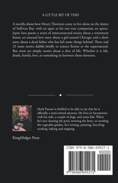 A novella about how Henry Thornton came to live alone on the shores of Sullivan Bay, with an egret as his one true companion; an apocalyptic love poem; a series of interconnected stories about a retirement home; an unusual love story about a girl named Chicago; and a short story about a dead father who has left some things behind. These and 25 more stories dabble briefly in science fiction or the supernatural. But most are simply stories about a slice of life. Whether it is life, death, family, love, or something in between those elements. NOTE: This is a republication of Mark Paxson's two early short story collections (The Marfa Lights and Shady Acres), along with the inclusion of the novella The Irrepairable Past.