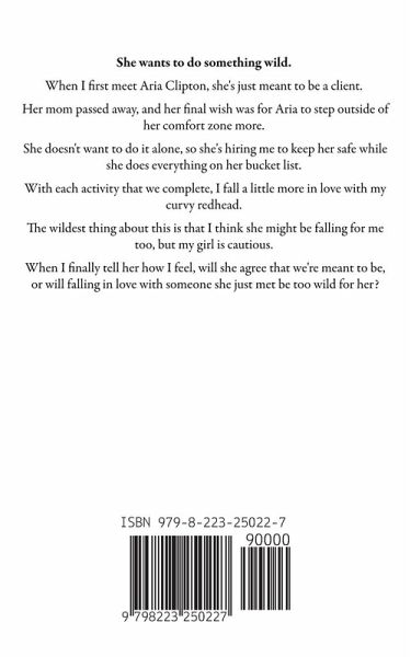 She wants to do something wild. When I first meet Aria Clipton, she's just meant to be a client. Her mom passed away, and her final wish was for Aria to step outside of her comfort zone more. She doesn't want to do it alone, so she's hiring me to keep her safe while she does everything on her bucket list. With each activity that we complete, I fall a little more in love with my curvy redhead. The wildest thing about this is that I think she might be falling for me too, but my girl is cautious. When I finally tell her how I feel, will she agree that we're meant to be, or will falling in love with someone she just met be too wild for her?