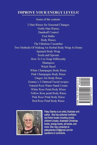 Some of the Content: A Little Bit About Herbs Two Hair Rinses for the Changing SeasonsNettle Hair Rinses Dandruff ControlFoot BathsBody RinsesThe Fabulous CucumberTwo Methods Of Making An Herbal Body Wrap At Home Spinach Body WrapSeeds and SproutsHow To Use Soap DifferentlyShampoosWitch HazelWhite Champagne Body RinsePink Champagne Body RinseGinger Ale Body RinseGranny's 2 Oatmeal Facial recipesNatural Rose Water Hand CreamWhite Rose Petal Body RInse Yellow Rose petal Body RinsePink Rose Petal Body RinseRed Rose Petal Body Rinse