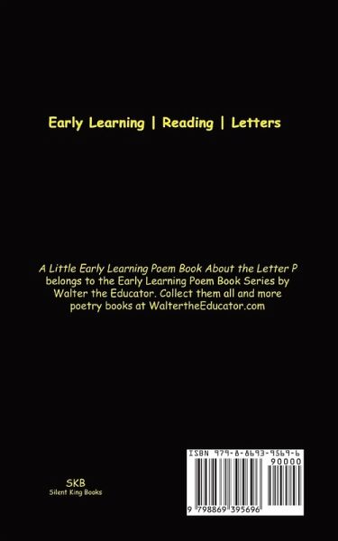 A Little Early Learning Poem Book about the Letter P belongs to the Early Learning Poem Book Series by Walter the Educator. Collect them all and more books at WaltertheEducator.com. This book is dedicated to all the early learners across the world.